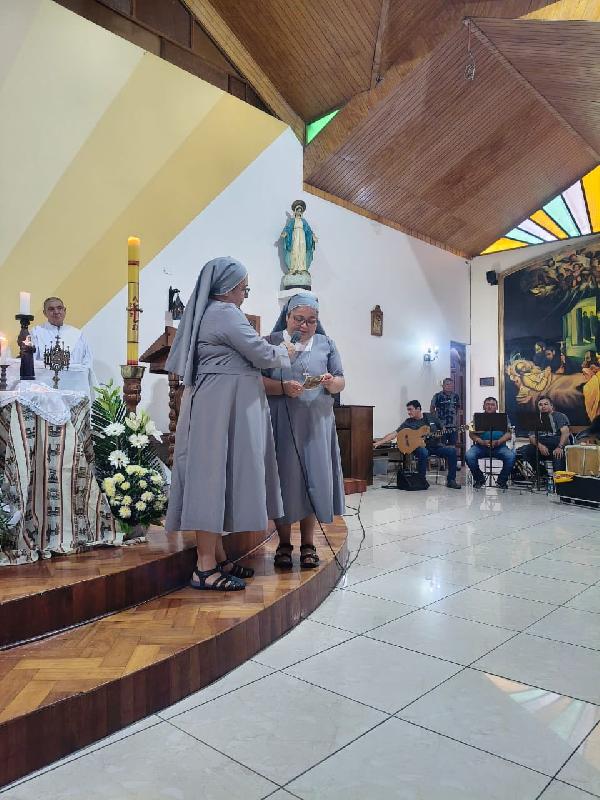 Al término de la Eucaristía, el párroco, P. Jesús Apiolaza, agradeció a Dios por el testimonio de vida de la religiosa e invitó a todos los presentes a encomendar su camino bajo el amparo de la Virgen María, pidiendo que el Señor continúe fortaleciendo su vocación con fidelidad y alegría.