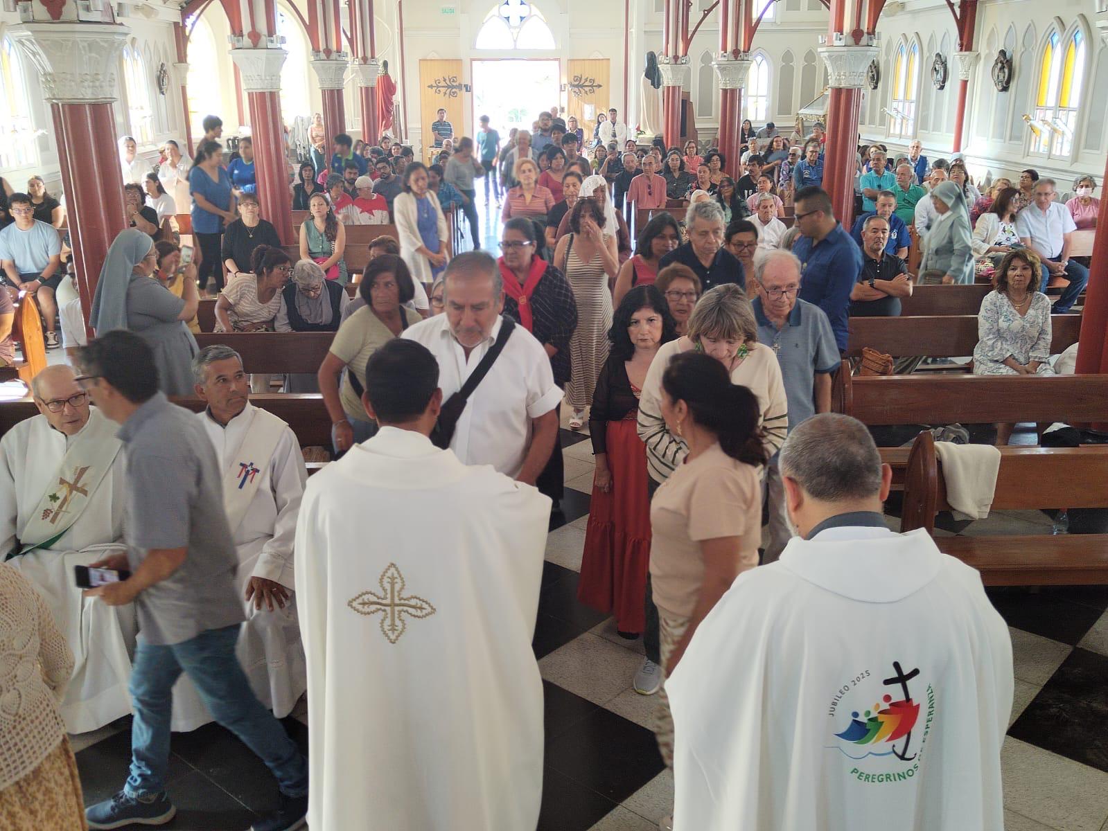 La Santa Misa fue presidida por el Obispo diocesano, Monseñor Moisés Atisha, quien invitó a la comunidad a vivir este momento como una acción de gracias por el camino recorrido y por las múltiples gracias recibidas durante este tiempo jubilar, convocado por el Papa Francisco de feliz memoria y vivido en comunión con el Santo Padre León XIV.